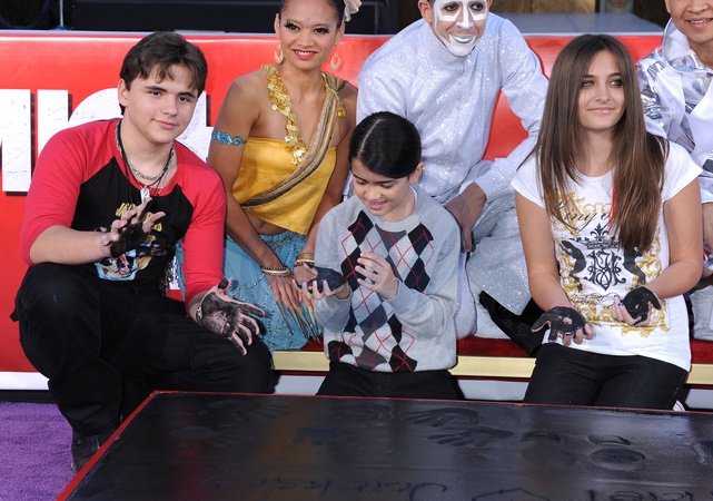 Dzieci Michaela Jacksona i jego przyjaciele podczas imprezy upamietniajacej muzyka w Grauman's Chinese Theatre, Hollywood
