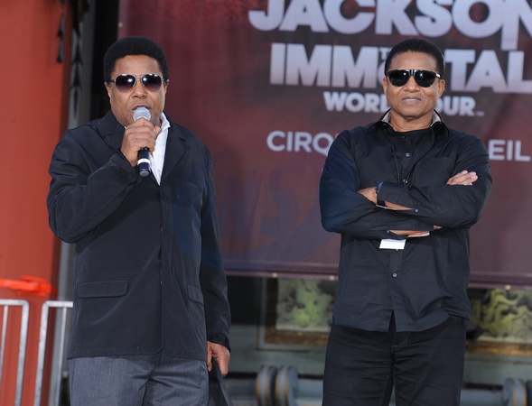 Dzieci Michaela Jacksona i jego przyjaciele podczas imprezy upamietniajacej muzyka w Grauman's Chinese Theatre, Hollywood