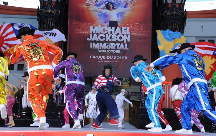 Dzieci Michaela Jacksona i jego przyjaciele podczas imprezy upamietniajacej muzyka w Grauman's Chinese Theatre, Hollywood