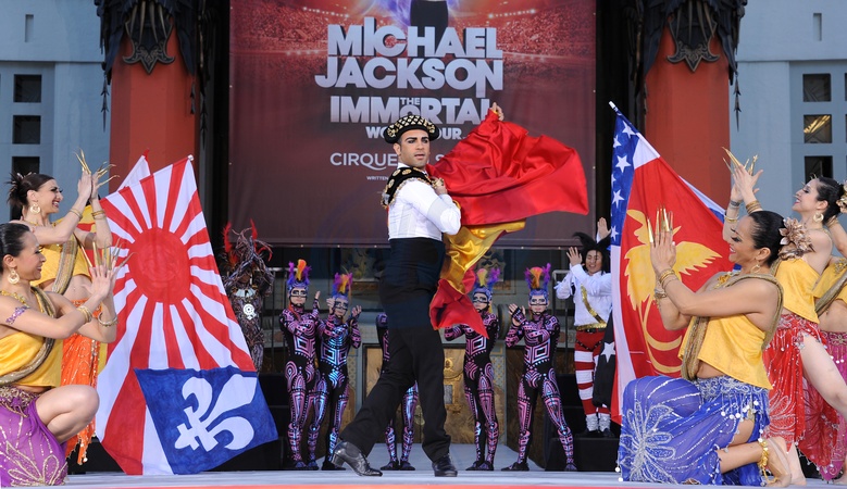 Dzieci Michaela Jacksona i jego przyjaciele podczas imprezy upamietniajacej muzyka w Grauman's Chinese Theatre, Hollywood