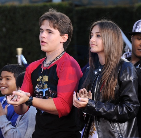 Dzieci Michaela Jacksona i jego przyjaciele podczas imprezy upamietniajacej muzyka w Grauman's Chinese Theatre, Hollywood