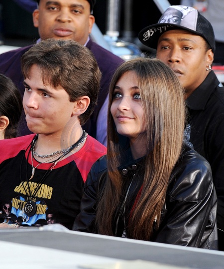 Dzieci Michaela Jacksona i jego przyjaciele podczas imprezy upamietniajacej muzyka w Grauman's Chinese Theatre, Hollywood
