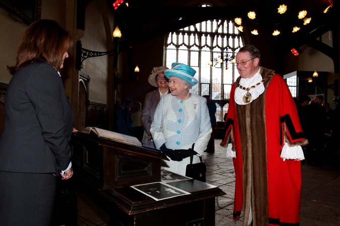 Krolowa Elzbieta II podczas wizyty w Kings Lynn Town Hall w Norfolk