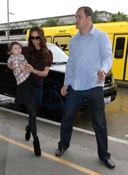 Victoria Beckham z corka Harper na lotnisku w Los Angeles