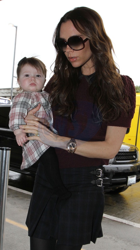 Victoria Beckham z corka Harper na lotnisku w Los Angeles