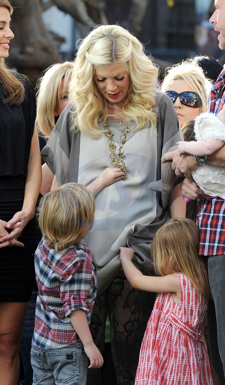 Tori Spelling z rodzina na planie "Extra TV", Los Angeles