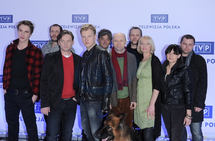 Jakub Wesolowski z psem, Krzysztof Pieczynski - obsada serialu Komisarz Alex