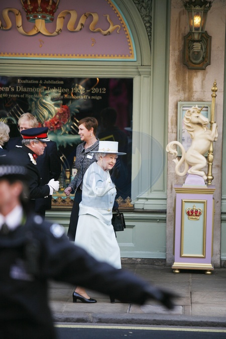 Krolowa Elzbieta II, ksiezna Camilla i ksiezna Kate podczas wizyty w sklepie Fort and Mason, Londyn
