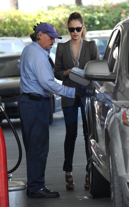 Jessica Alba tankuje samochod, Los Angeles