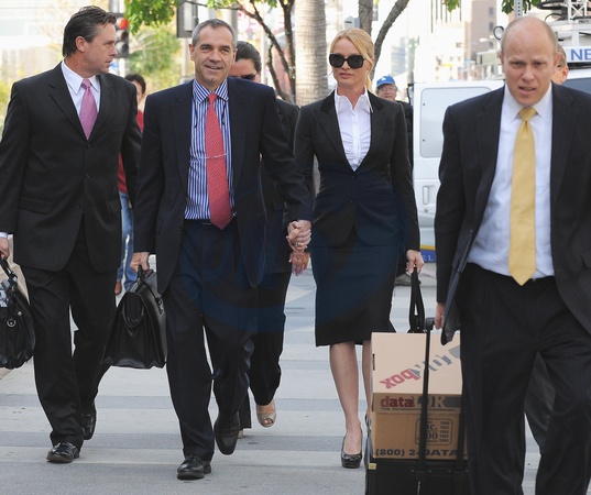 Nicollette Sheridan z chlopakiem ida do sadu, Los Angeles