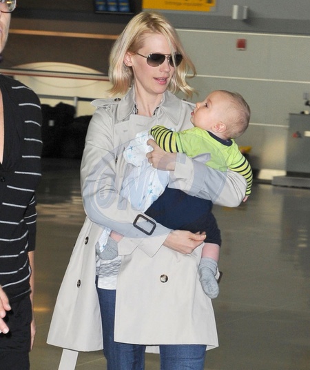 January Jones z synem Xander na lotnisku w Nowym Jorku