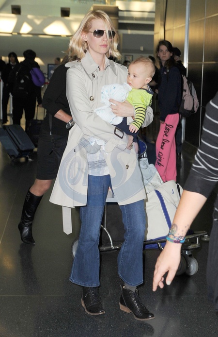 January Jones z synem Xander na lotnisku w Nowym Jorku