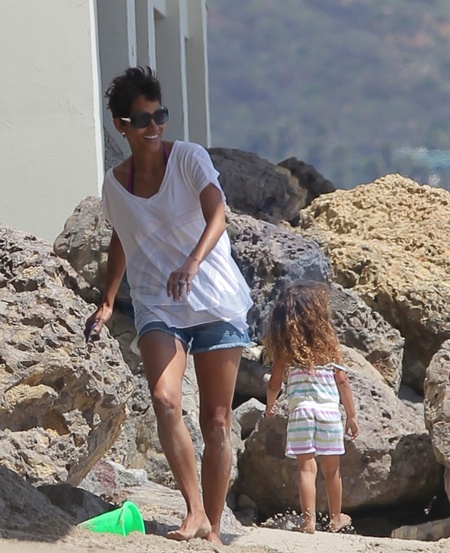 Halle Berry z corka Nahla na plazy w Malibu