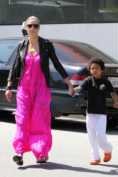 Heidi Klum w rozowej falbaniastej sukience