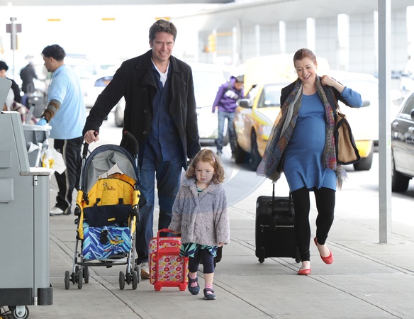 Alyson Hannigan z rodzina na lotnisku JFK, Nowy Jork