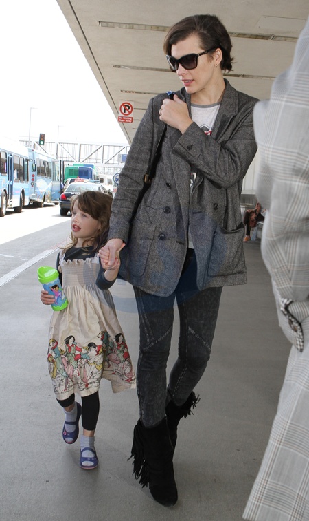 Milla Jovovich z corka na lotnisku w Los Angeles