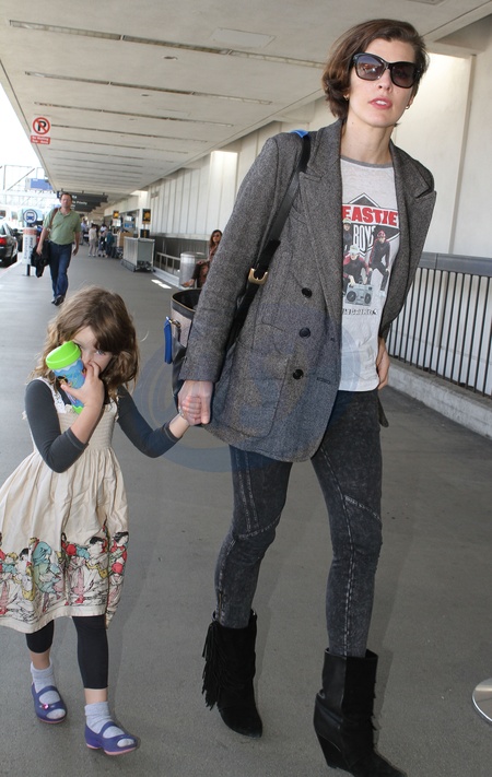 Milla Jovovich z corka na lotnisku w Los Angeles