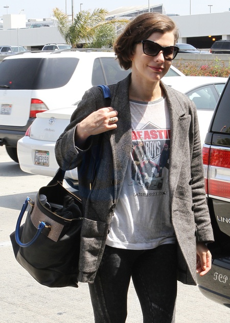 Milla Jovovich z corka na lotnisku w Los Angeles