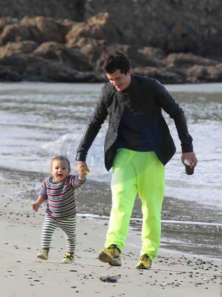 Orlando Bloom z synkiem na plazy w Wellington, Nowej Zelandia