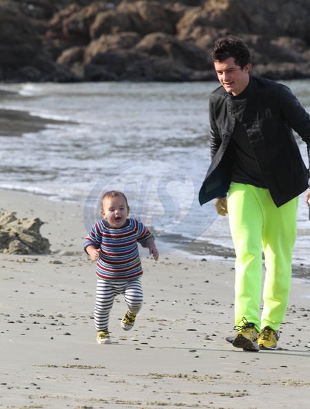 Orlando Bloom z synkiem na plazy w Wellington, Nowej Zelandia