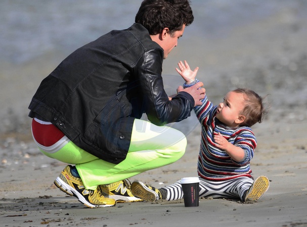 Orlando Bloom z synkiem na plazy w Wellington, Nowej Zelandia