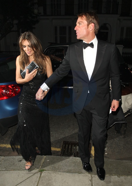 Liz Hurley i Shane Warne wracaja z imprezy, Londyn