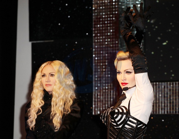 Trzy woskowe figury Madonny w muzeum Madame Tussauds, Londyn