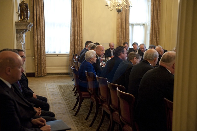 Krolowa Elzbieta II na spotkaniu z ministrami, Londyn